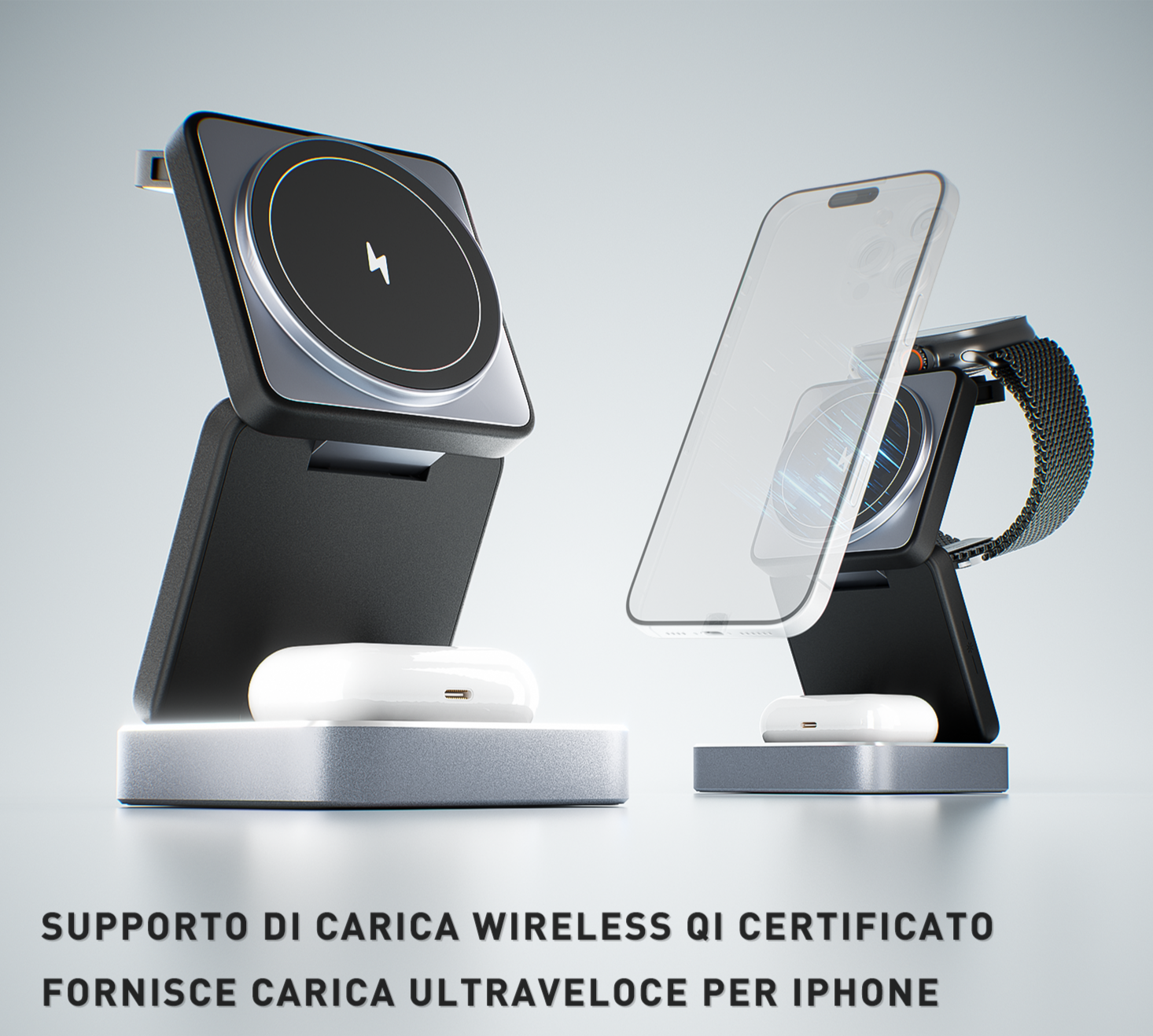 - Stazione di ricarica wireless pieghevole 3 in 1